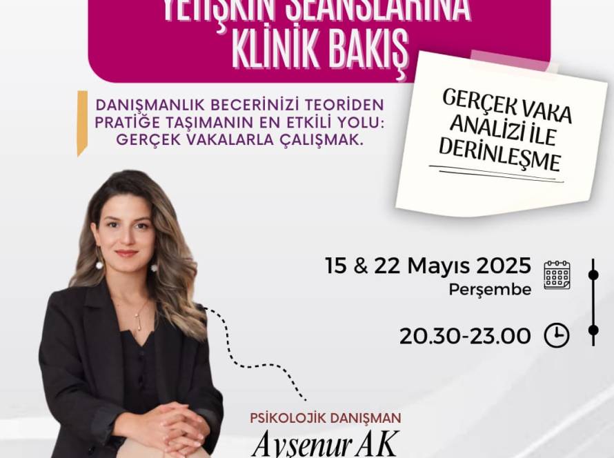 Eğitimler12 Mayıs 2025Yetişkin ve Çocuk Seanslarını Derinlemesine İnceleme Eğitimi : Gerçek Seanslar Üzerinden Vaka Analizi | 4 Oturumluk Online Eğitim